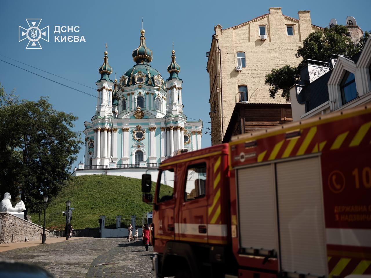 Виявилося, що 1 липня о 15:23 до служби порятунку надійшов виклик про пожежу на вулиці Андріївський узвіз. Сталось коротке замикання, яке супроводжувалось горінням.