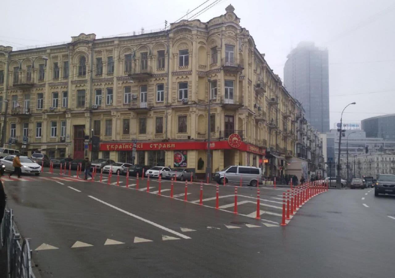 Сотрудники КП «Центр организации дорожного движения» в минувшие выходные установили дорожные столбики на перекрестке улиц Бассейной и Круглоуниверситетской в Киеве.