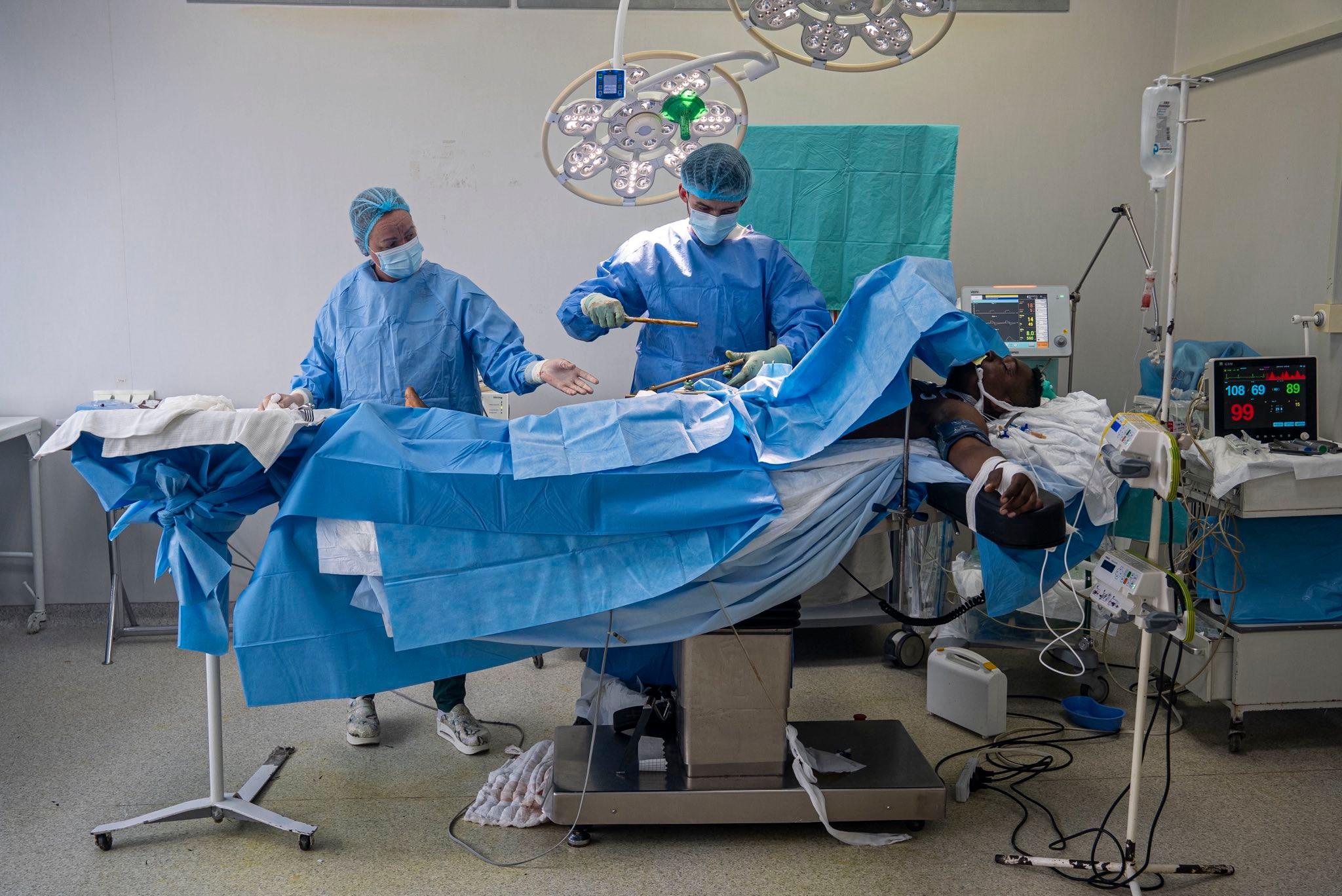 Хірурги-травматологи вже провели дві операції, зафіксувавши стегнову кістку апаратом зовнішньої фіксації. Попри масивний дефект м’язів, функції ноги збережено. Лікарі дають оптимістичні прогнози: після загоєння рани та тривалої реабілітації воїн зможе не лише ходити, а й бігати.