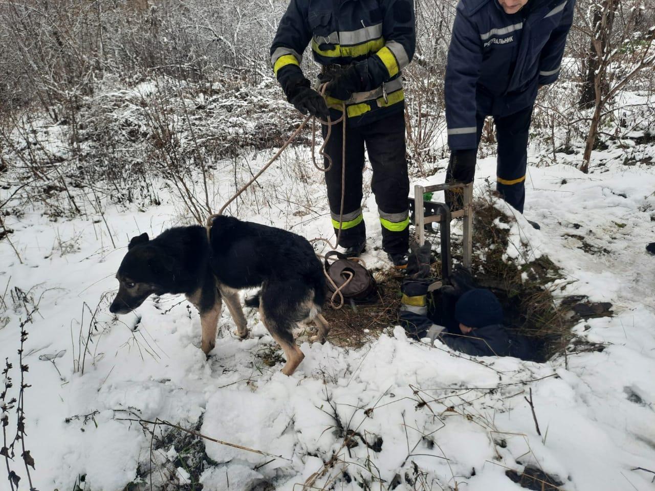 На місце виклику прибув черговий караул 57-го Державного пожежно-рятувального посту смт Борова у складі чотирьох осіб. За допомогою драбини та рятувальної мотузки рятувальники витягли собаку на поверхню.