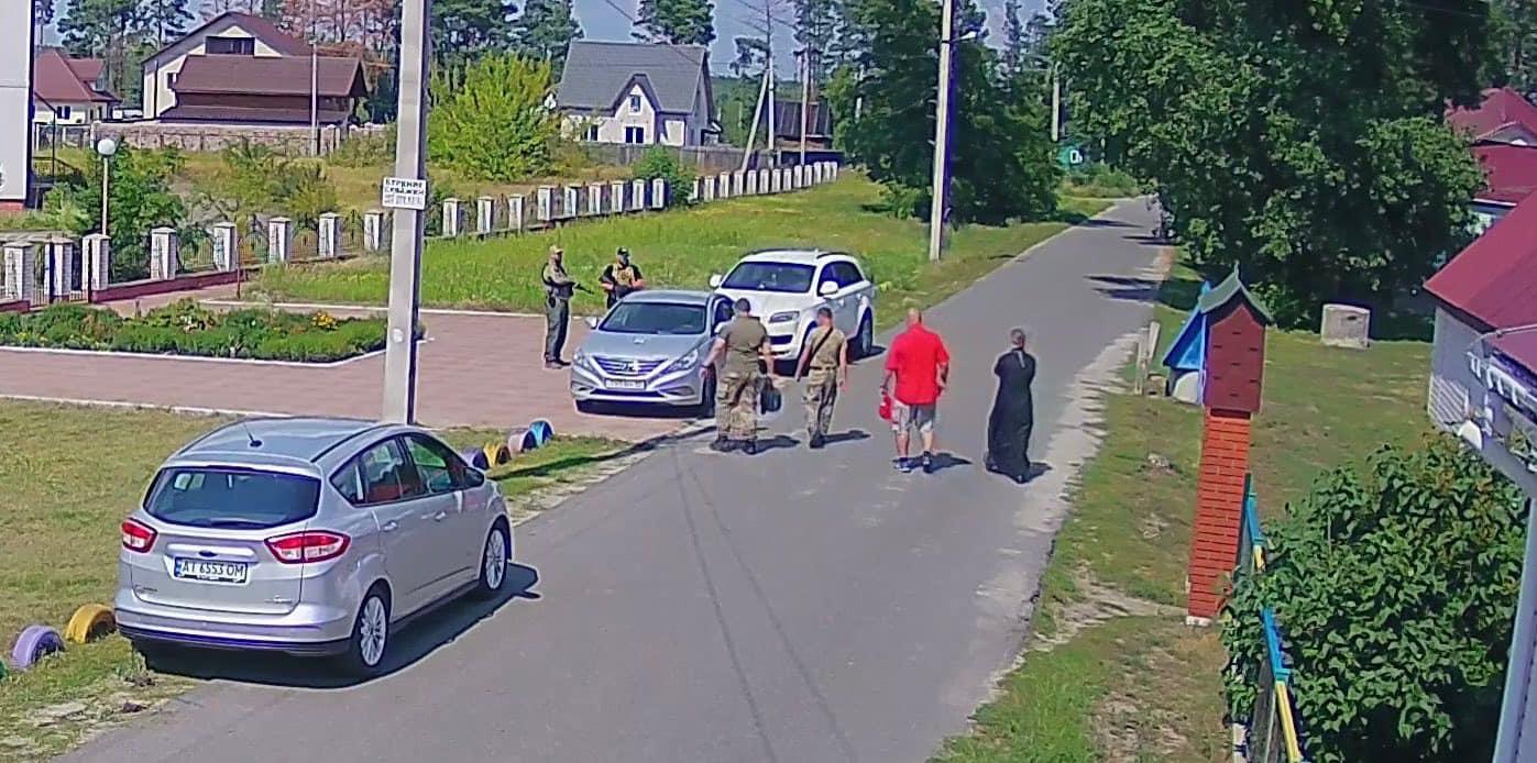Про це голова сільради розповів у Facebook та опублікував фото вчорашнього інциденту, на яких видно священника та чоловіків у камуфляжній формі з вогнепальною зброєю.