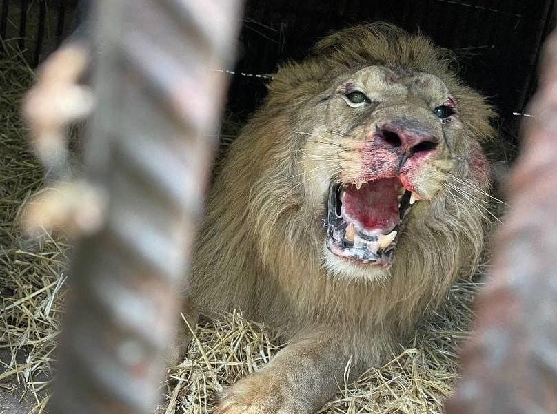 «Брецель злякався гучних вибухів та, намагаючись врятуватись, побився об вольєр. Українців ракетами вже не налякати, тож росіянам лишається певно тільки полохати тварин», – зазначають у повідомленні та просять про фінансову допомогу на лікування лева.