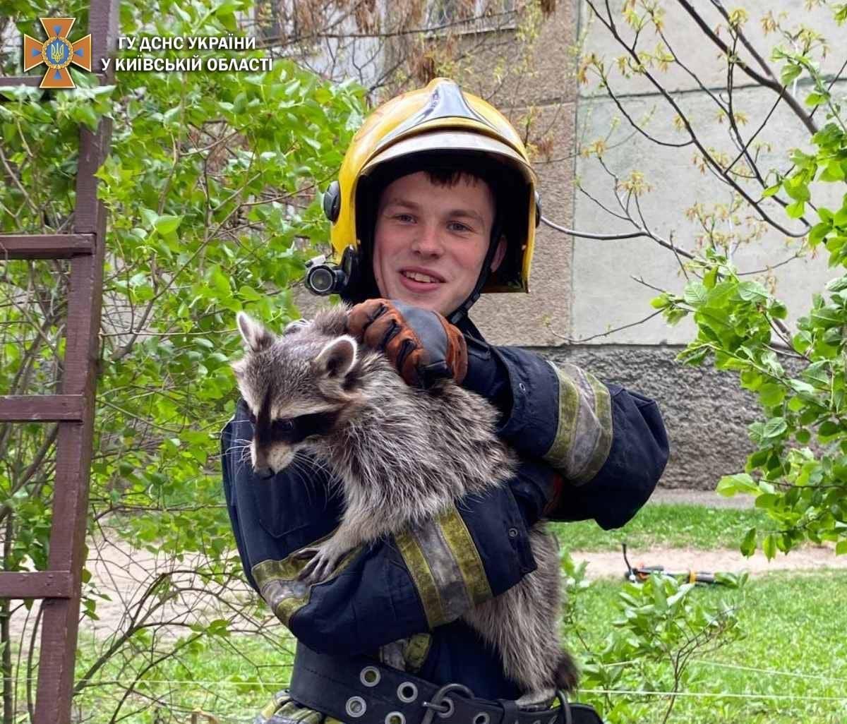 Тварину врятував пожежник, який дістав його за допомогою драбини і передав власниці.