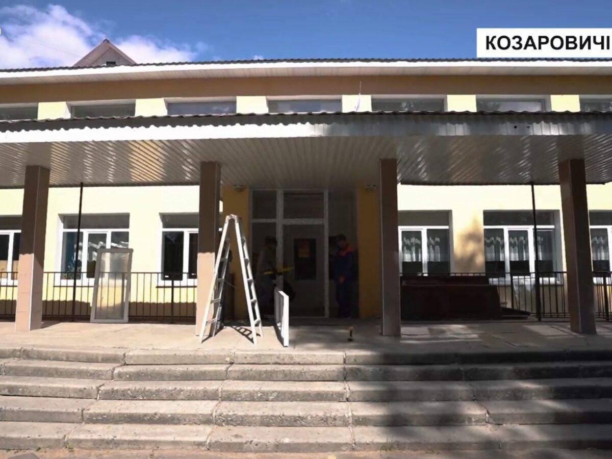 Після пошкоджень, які були нанесені російською армією, у Козаровицькій гімназії встановлюють вибиті вікна та двері. Окрім того, у гімназії триває облаштування найпростішого укриття.