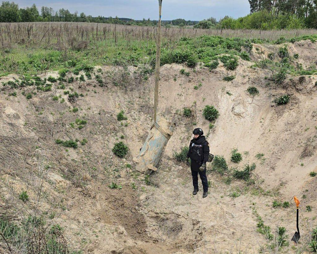 У полі на території Київської області сапери Мобільного рятувального центру швидкого реагування ДСНС провели операцію з вилучення бойової частини російської крилатої ракети Х-101. Небезпечну знахідку виявили посеред сільськогосподарських угідь.