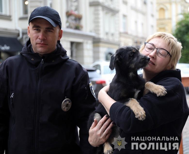 Киянка передала песика правоохоронцю та залишила свої контакти, на випадок, якщо власник не знайдеться.