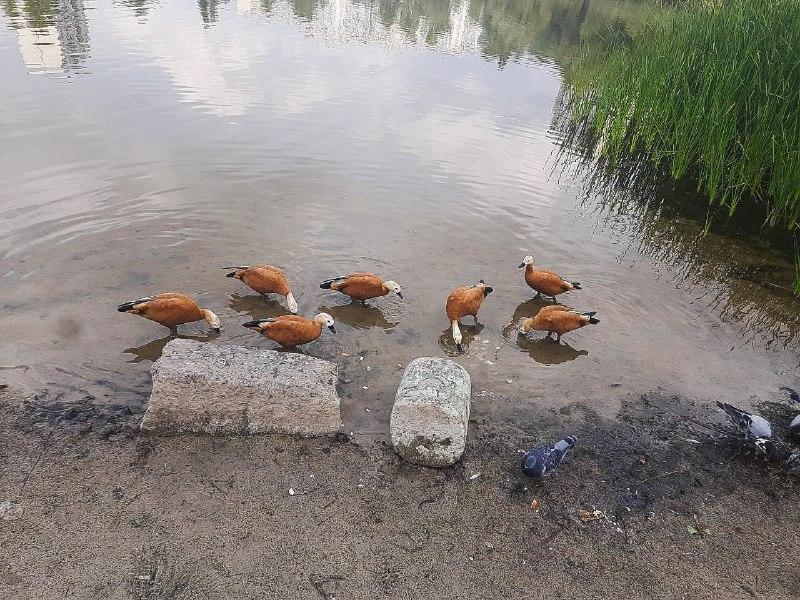 На Оболоні на озері Біле плаває зграйка качок огарів, з підрізаними крилами. Хтось випустив туди цих качок, і не дбає про їх подальшу долю.