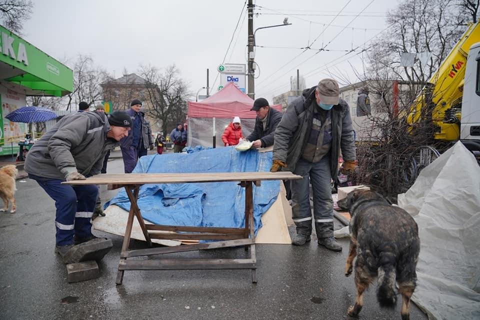 Також під час демонтажу сталась дуже неприємна ситуація. Під столом однієї з торговельних яток лежав собака, який вкусив працівника “Київблагоустрою” за ногу. Довелось викликати “швидку” і вже на місці медики надали допомогу потерпілому.