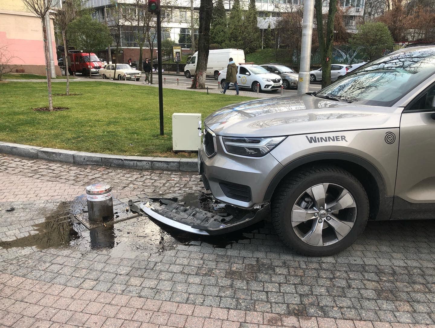 Коли режисер заїжджав до свого двору, його автівку “проштрикнув” болард, який з невідомих причин “заглючив” та вирішив піднятись прямо під машиною. Стовпчик пошкодив бампер та піддон автівки, а все мастило витекло на дорогу.