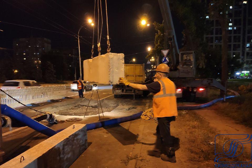 Через аварію на каналізаційному колекторі на проїжджій частині утворилося провалля. Наразі фахівці Київводоканалу виконують перекачку стоків та дослідження колектору, після чого зможуть розпочати ремонтні роботи”,