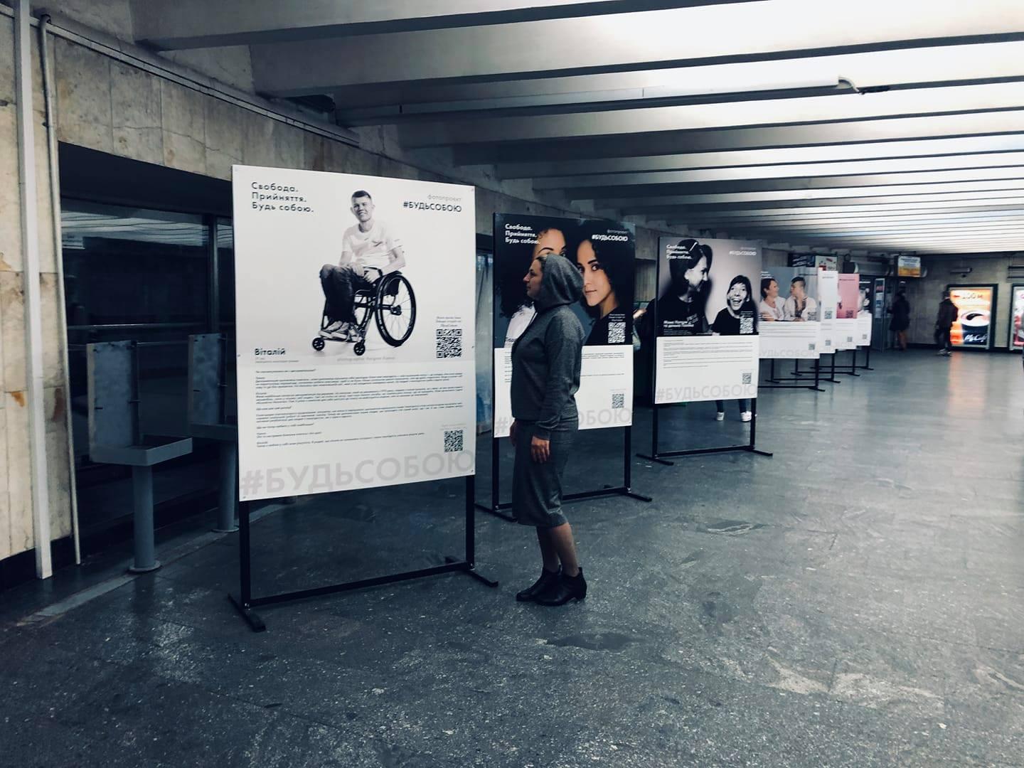 В вестибюле станции киевского метро «Майдан Незалежности» представили фотопроект «Будь собой». Об этом в Facebook сообщила пресс-секретарь столичной подземки Наталья Макогон.