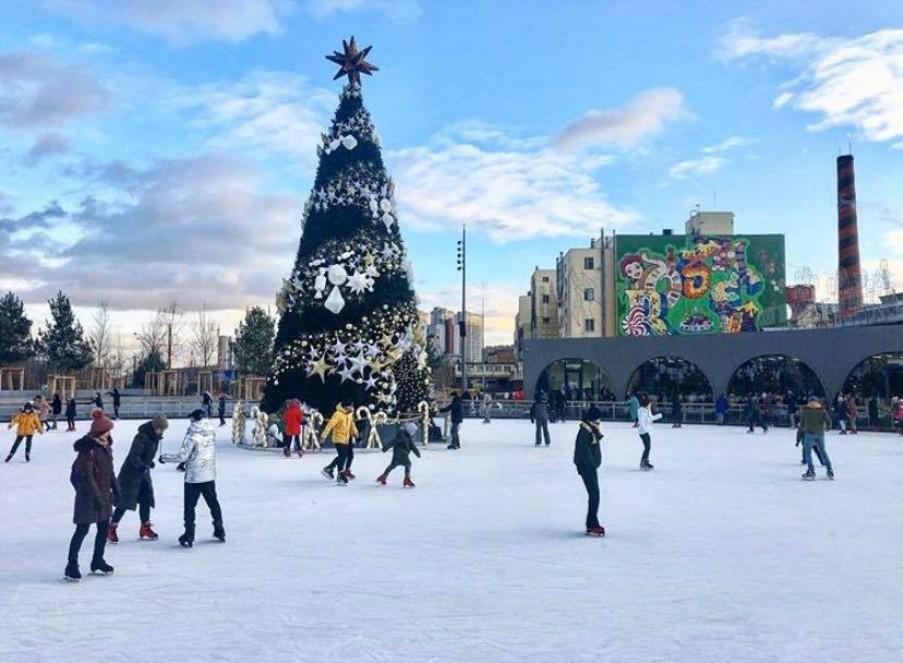 В минувшие выходные на территории киевской кондитерской фабрики Roshen (Демеевская площадь, просп. Науки, 1) начал работать большой каток под открытым небом. Как сообщается на сайте компании, каток является частью зимнего городка-ярмарки Roshen Winter Village, который в этом году открывается впервые.