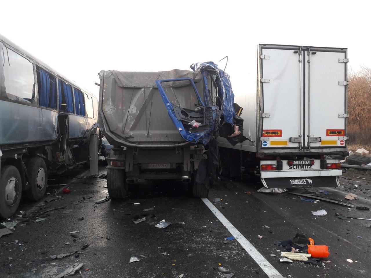 Как сообщает пресс-служба ГСЧС, из-за гололеда столкнулись пять грузовых, пять легковых автомобилей и один рейсовый автобус сообщением «Варшава – Херсон». В последнем находились 20 пассажиров, из которых никто не пострадал.