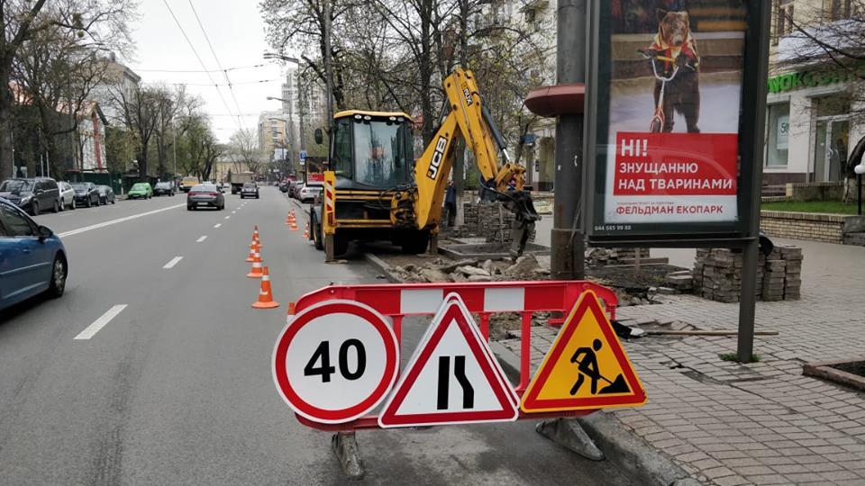 В Киеве на улице Ивана Мазепы обустраивают парковочные карманы, а на проспекте Мира – островок безопасности.
