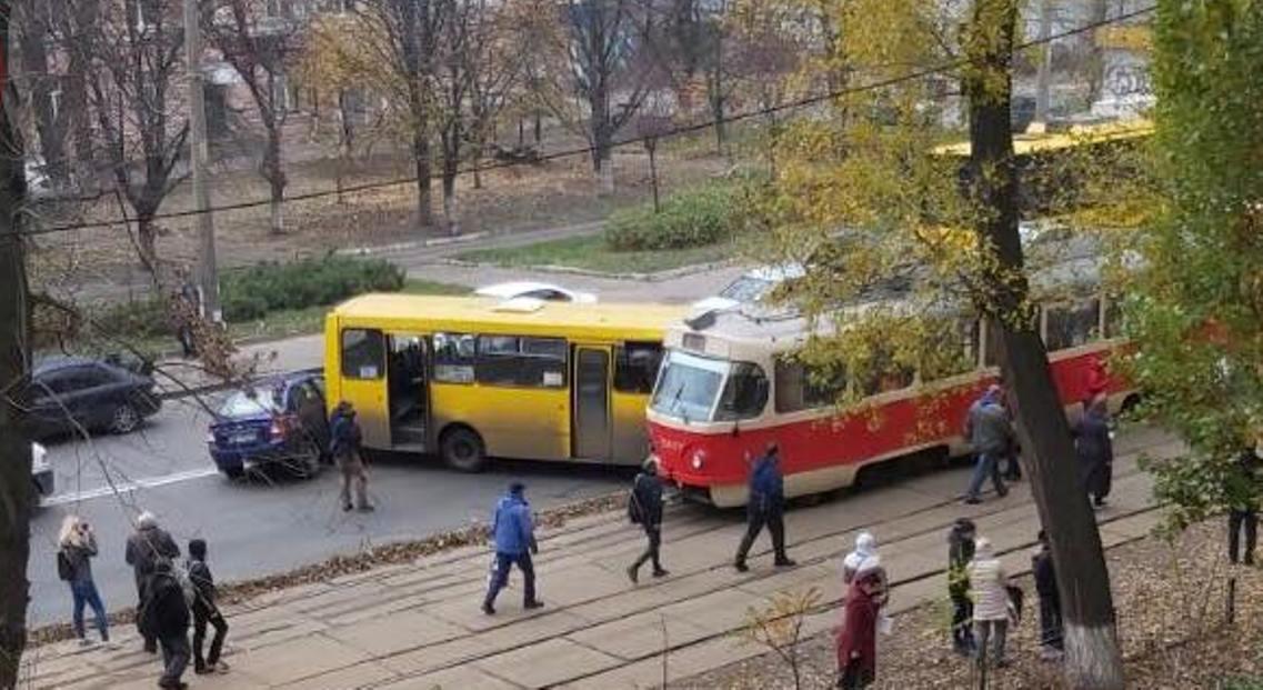 В четверг, 14 ноября, в Киеве на улице Кирилловской столкнулись маршрутка №219, трамвай и легковой автомобиль. Об этом сообщает «Киев оперативный» в Facebook.