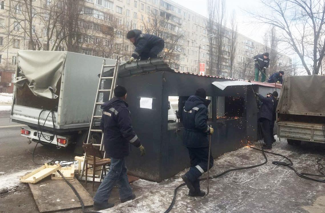 На протяжении двух дней сотрудники «Киевблагоустрою» демонтировали ряд незаконных сооружений на улице Милютенко, 34 в Киеве.