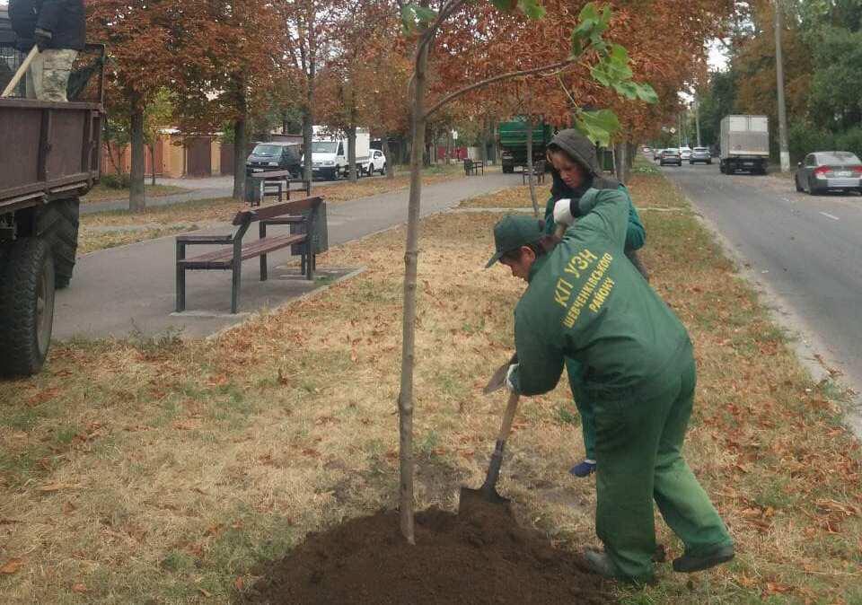 В Киеве продолжают озеленять улицы города. Так, более 30 каштанов высадили на одном из бульваров столичных Нивок в Шевченковском районе.