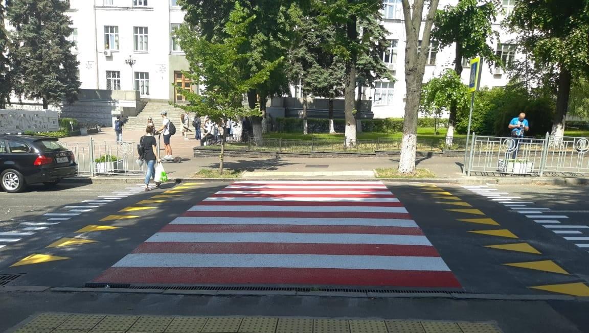 В Киеве возле Национального университета пищевых технологий на улице Владимирской, 68, обустроен приподнятый пешеходный переход.