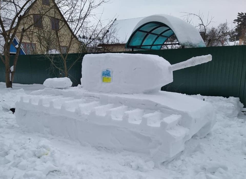 Про це йдеться на їх сторінці у Facebook та опубліковані фото. Танк зі снігу можна побачити прямо на вулиці.