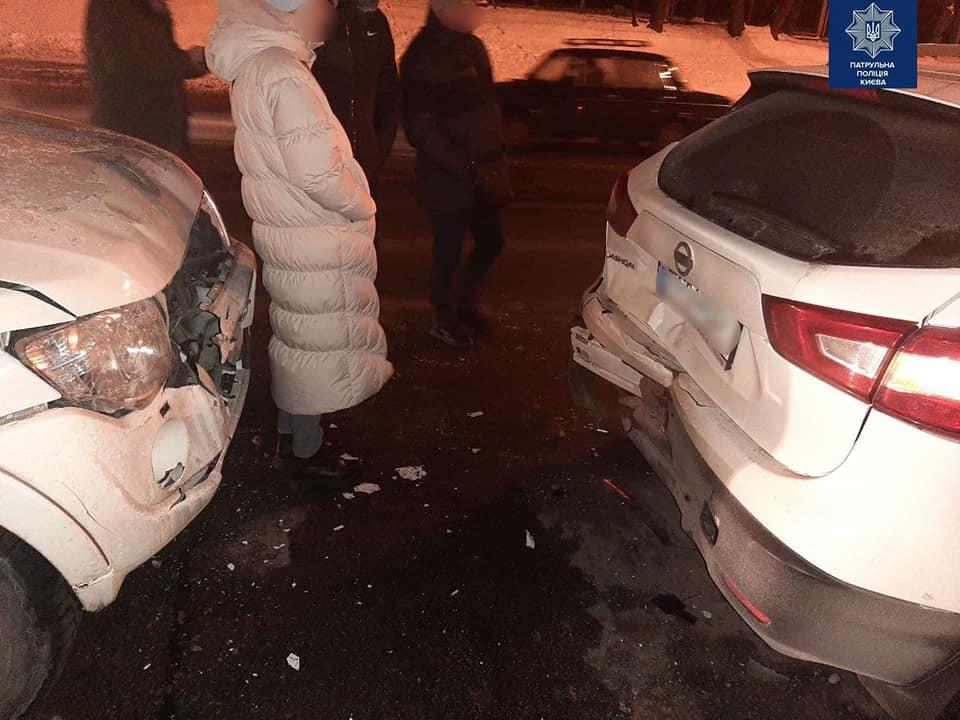 На проспекті Науки водій автомобіля Mitsubishi зіткнувся одразу з двама автомобілями – Renault та Nissan . Під час спілкування з водієм авто Mitsubishi патрульні помітили у нього явні ознаки алкогольного сп’яніння. Дрегер показав у чоловіка 2,25 проміле.
