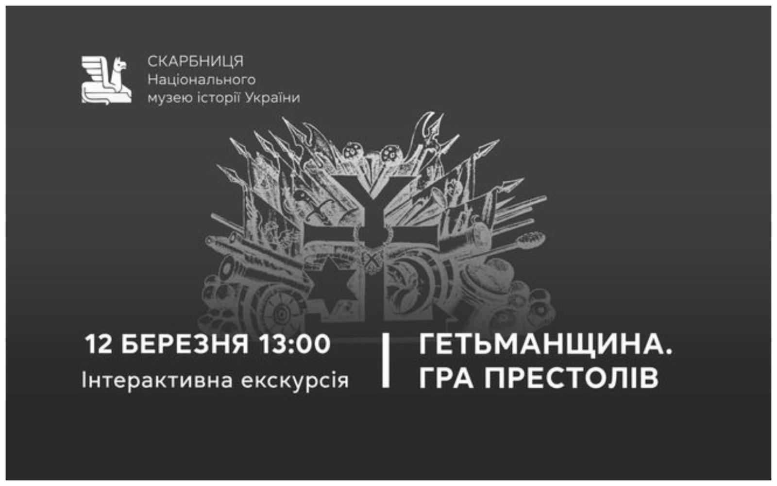 Початок інтерактивної екскурсії для дорослих «Гетьманщина. Гра престолів» у неділю, 12 березня, о 13:00.