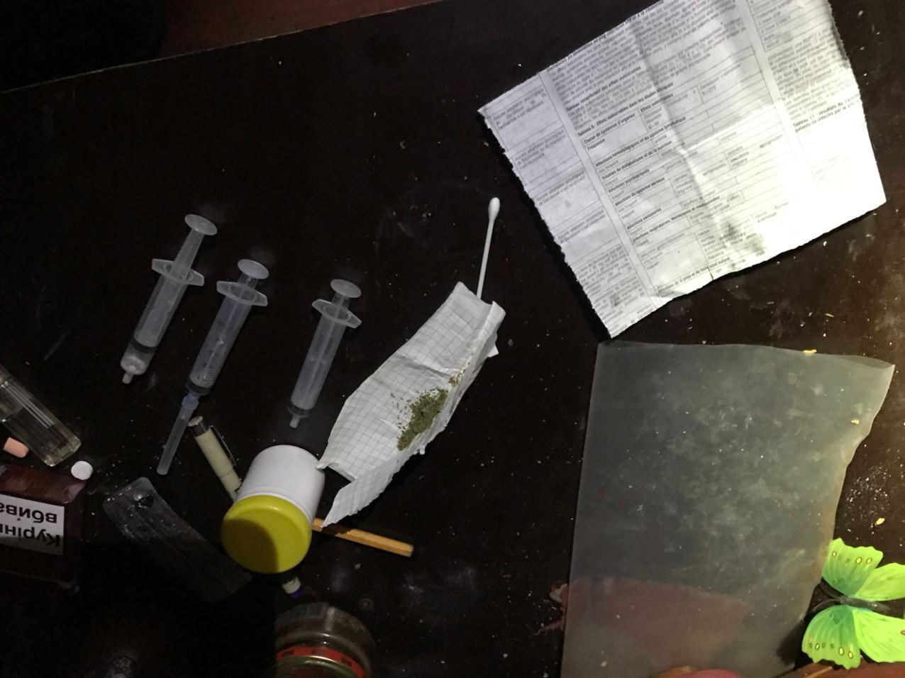 Зазначається, що під час обшуків було вилучено канабіс, метадон, шприци, мобільні телефони та чорнові записи.