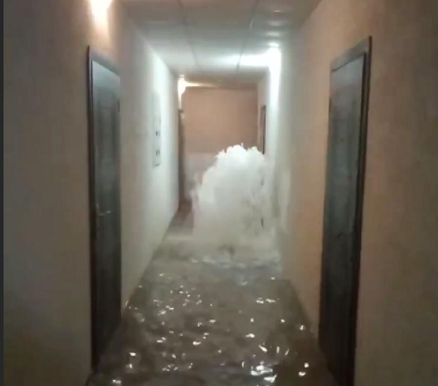 А такий величезний фонтан утворився в одному із житлових будинків Ірпеня прямо в під’їзді: