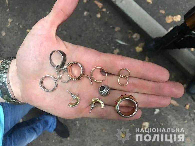 Жінка розповіла, що декілька тижнів тому в кафе вона познайомилась з 36-річним киянином та деякий час підтримувала з ним дружні стосунки. Днями той навідався до неї у гості разом із 32-річним чоловіком, якого представив як рідного брата. Під час застілля один з чоловіків викрав з шухляди ювелірні вироби, а коли господиня це помітила та намагалась їх зупинити, ті пригрозили їй ножем. У подальшому спільники зв’язали жінці скотчем руки та змусили її зняти з себе та віддати решту прикрас – сережки та каблучку.