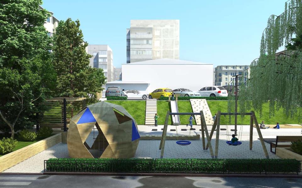 Реконструкція території передбачає озеленення, встановлення нових гойдалок, спортивного тренажеру, пісочниць і вбудованих батутів.