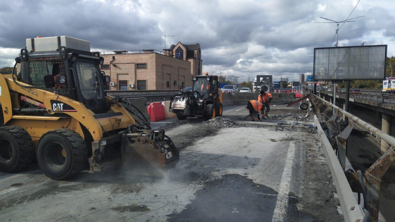 Специалисты работают на третьей и частично второй полосах движения в направлении левого берега. При благоприятной погоде работы должны завершить до конца октября.