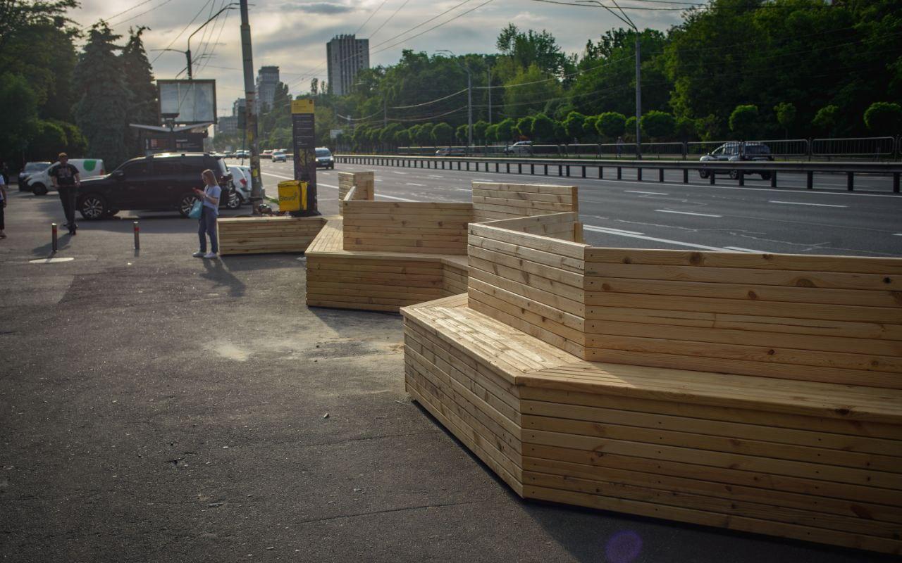 Окрім того, парклет поставлений в місці, яке абсолютно ніяк не затінене деревами на 8-смуговому проспекті, де немає контролю швидкості. Там рівень шуму такий, що просто проходити поруч буває не комфортно. Не те, що сидіти.