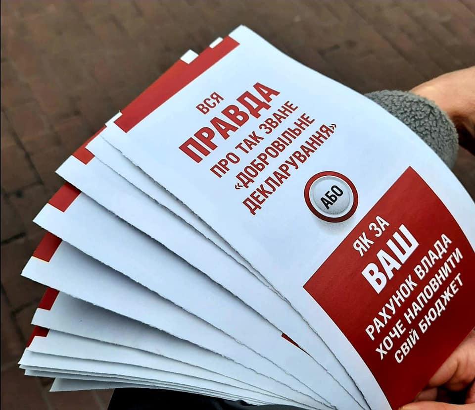 «Аби затулити дірки у бюджеті, які стали наслідком некомпетентності влади, монобільшість ухвалила закон «про детінізацію економіки», яким запровадила так зване «добровільне декларування» для громадян. На практиці це завершиться обдиранням громадян, які вже колись заплатили за своє майно» , – деталізують у політичній силі.