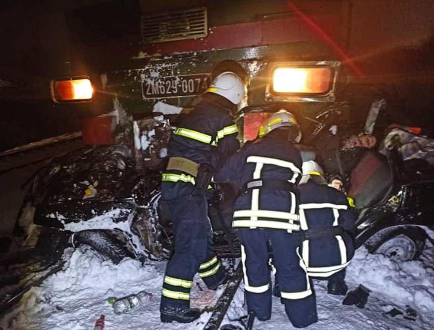 Як розповіли в ДСНС, о 23:32 їм надійшло повідомлення про те, що на залізничному переїзді відбулось зіткнення пасажирського поїзда “Київ – Івано-Франківськ” з легковим автомобілем.