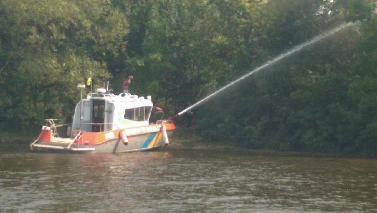 Сегодня, 13 августа, столичные спасатели с помощью пожарного катера ликвидировали возгорание на острове в заливе Оболонь.