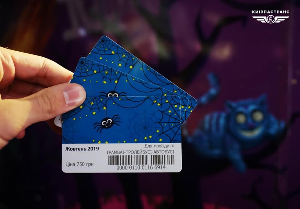 Как сообщает пресс-служба «Киевпастранса», проездные оформлены в духе осеннего праздника Хеллоуин — на карточках синего цвета изображен паук с паутиной.