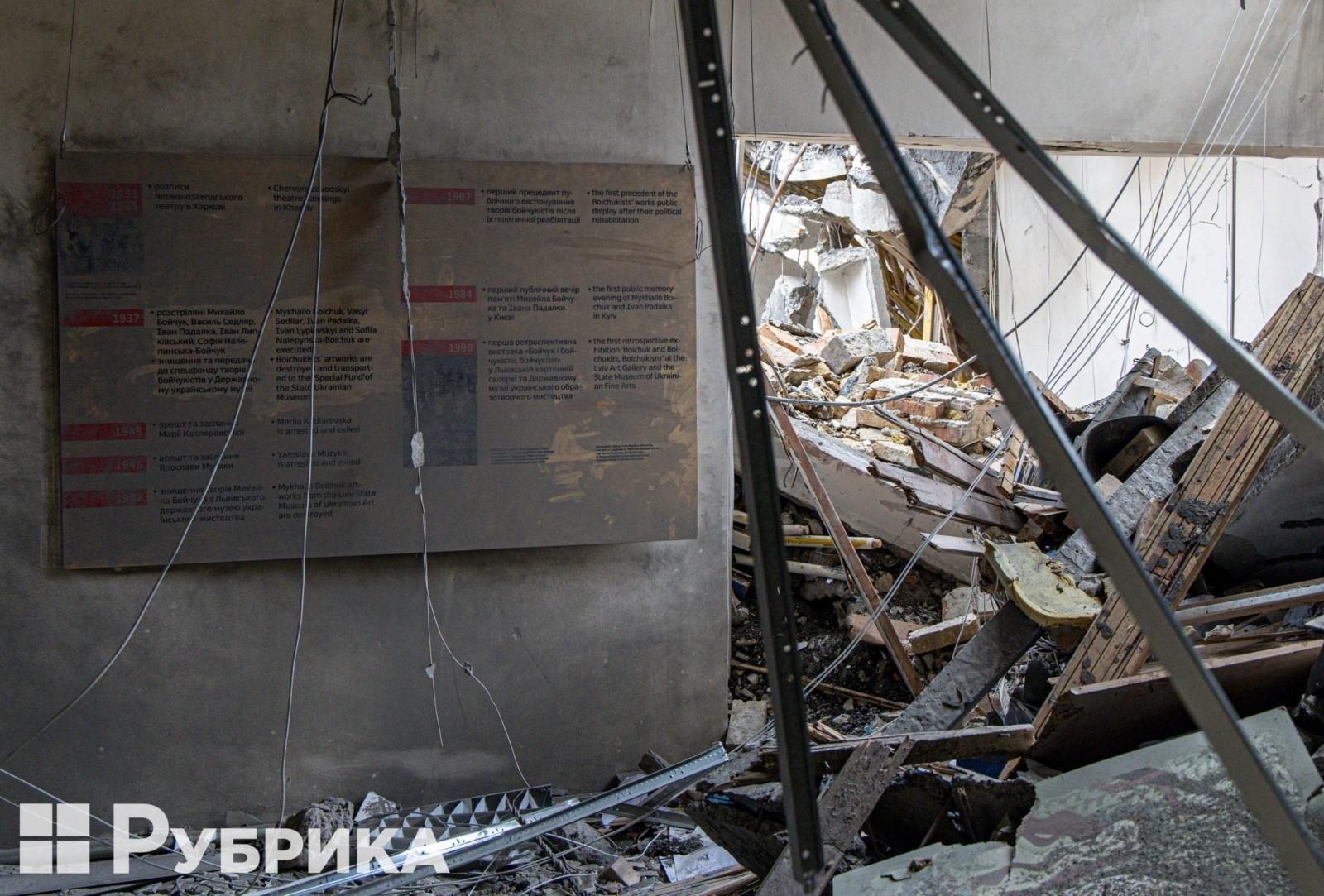 Знищено фонди дипломних робіт випускників, що збиралися впродовж 80 років. Під завалами опинилися художні роботи відомої бойчукістки Марії Котляревської. Також під час атаки знищено музей Михайла Бойчука.