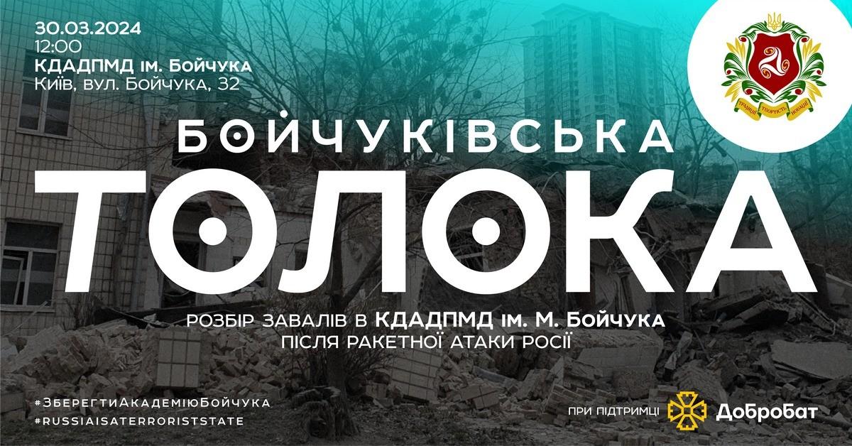 Колектив академії буде радий бачити всіх охочих допомогти, в суботу, 30 березня 2024, о 12:00, за адресою: