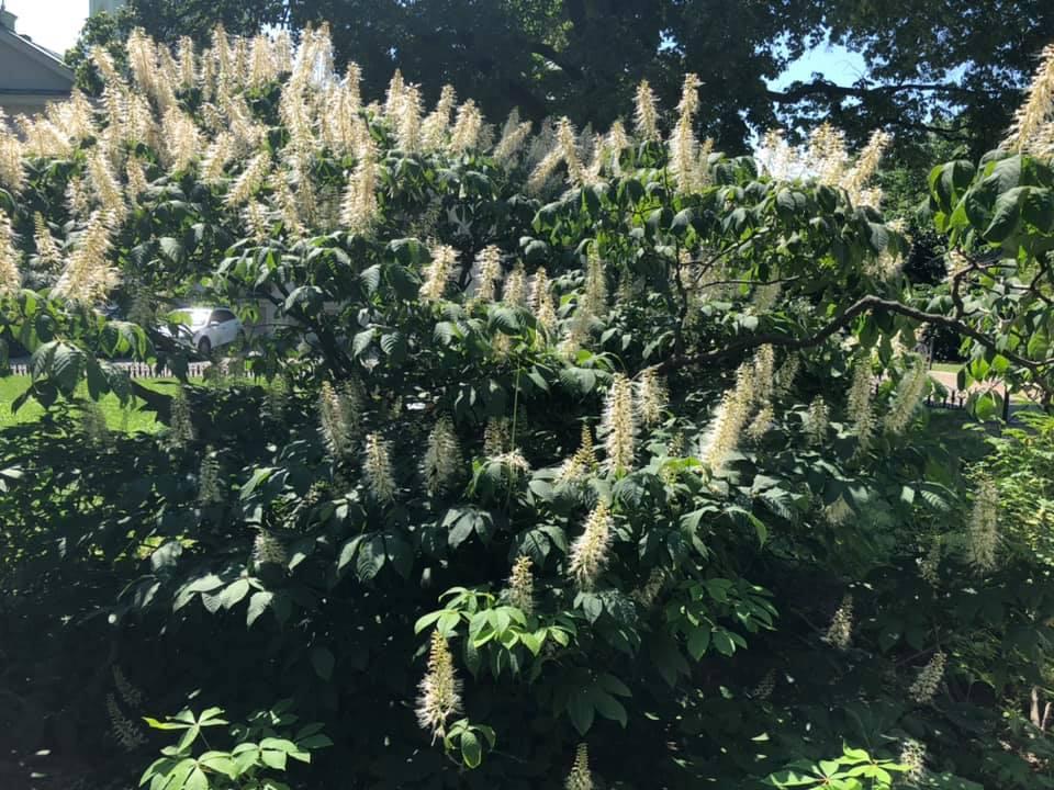 “Зараз саме час помилуватися цвітінням гіркокаштана дрібноквіткового (Aesculus parviflora Walt). Цей вид гіркокаштана цвіте значно пізніше своїх весняних родичів і також дуже декоративний”, – йдеться у повідомленні.