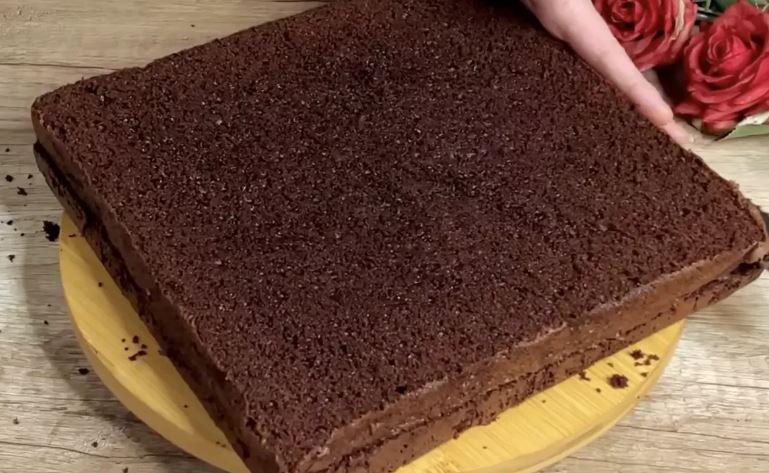 Основою торту є шоколадний бісквіт на молоці. Рецепт пропонує сайт "Смачненьке".