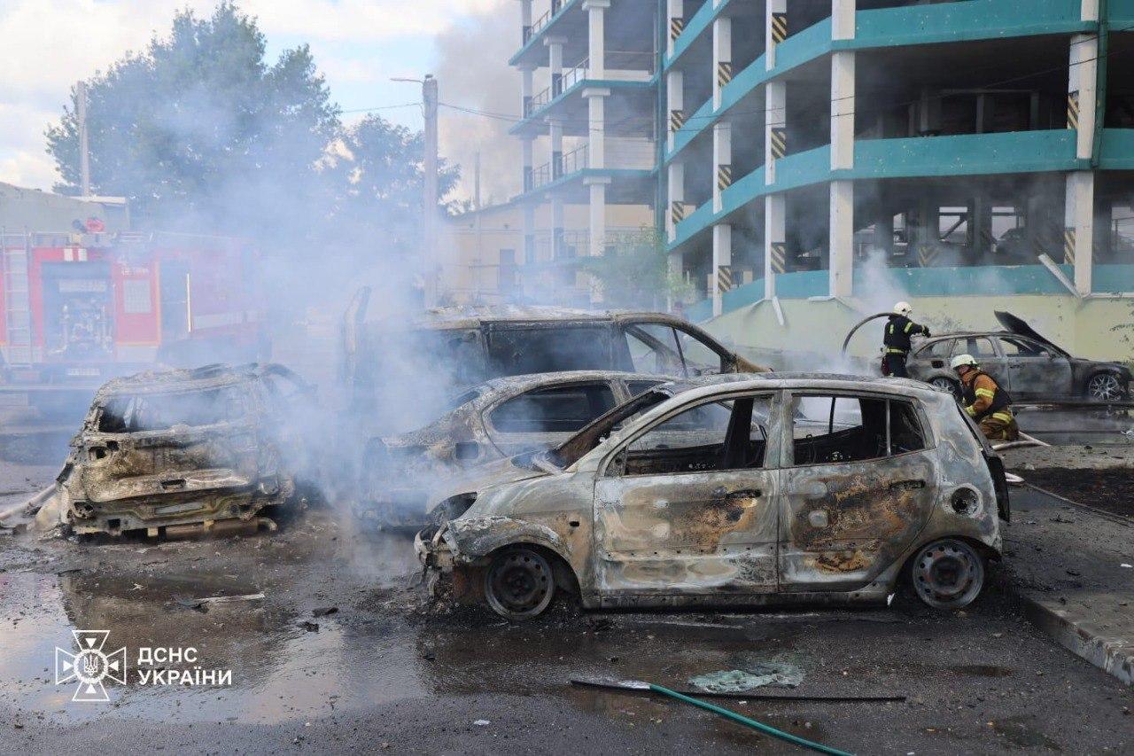 У ДСНС повідомляють, що на одній з локацій вибиті шибки у багатоквартирних будинках, локалізовано пожежу 7 автомобілів. На іншій – у гаражному кооперативі пошкоджені гаражі та легковики.