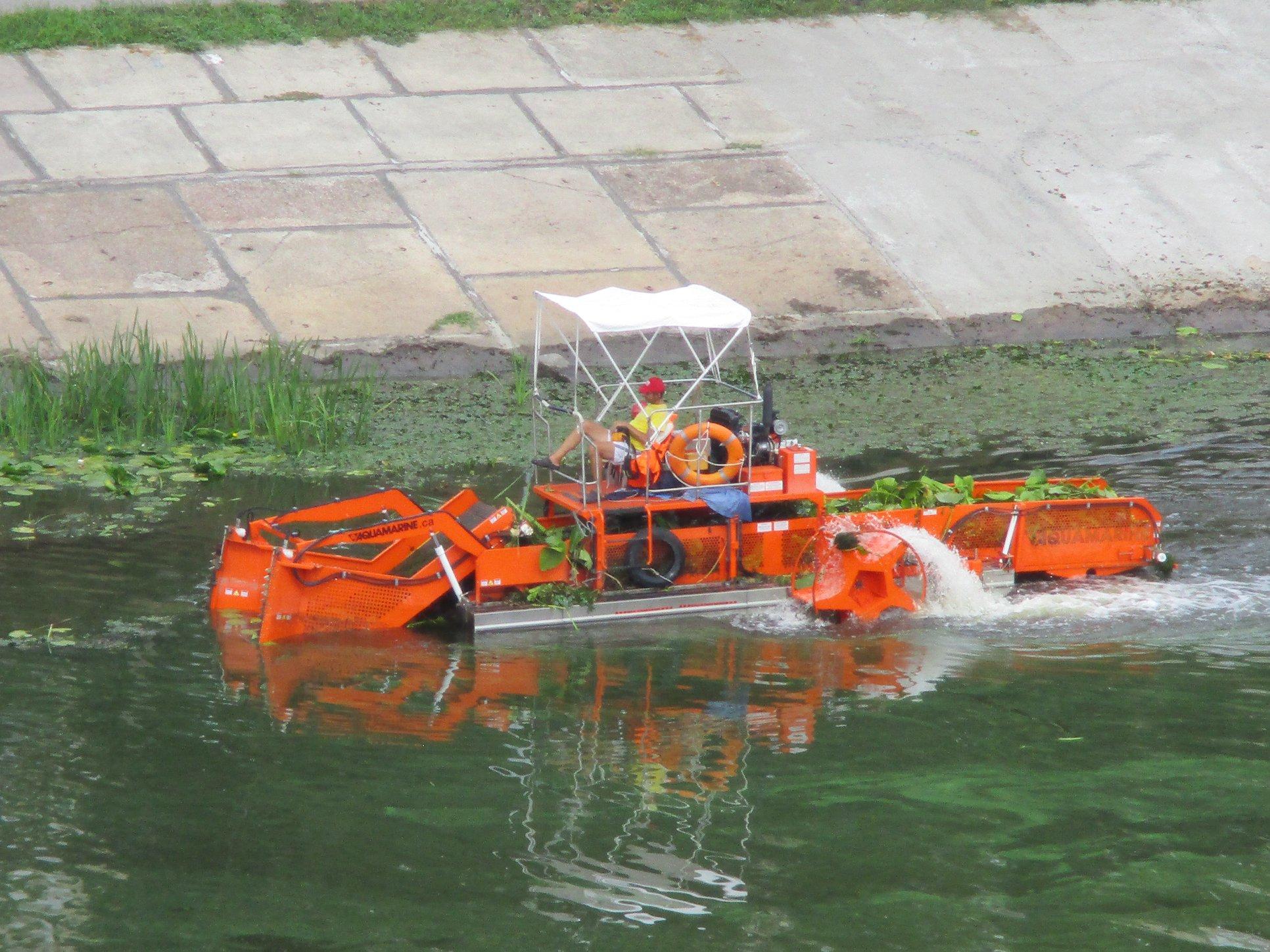 В Киеве на Русановском канале начал работать плавающий комбайн Aquamarine.