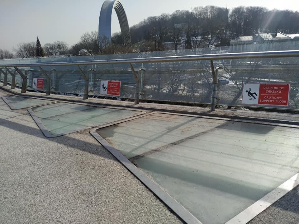 В липні 2019 року на мосту тріснуло скло бокової огорожі.