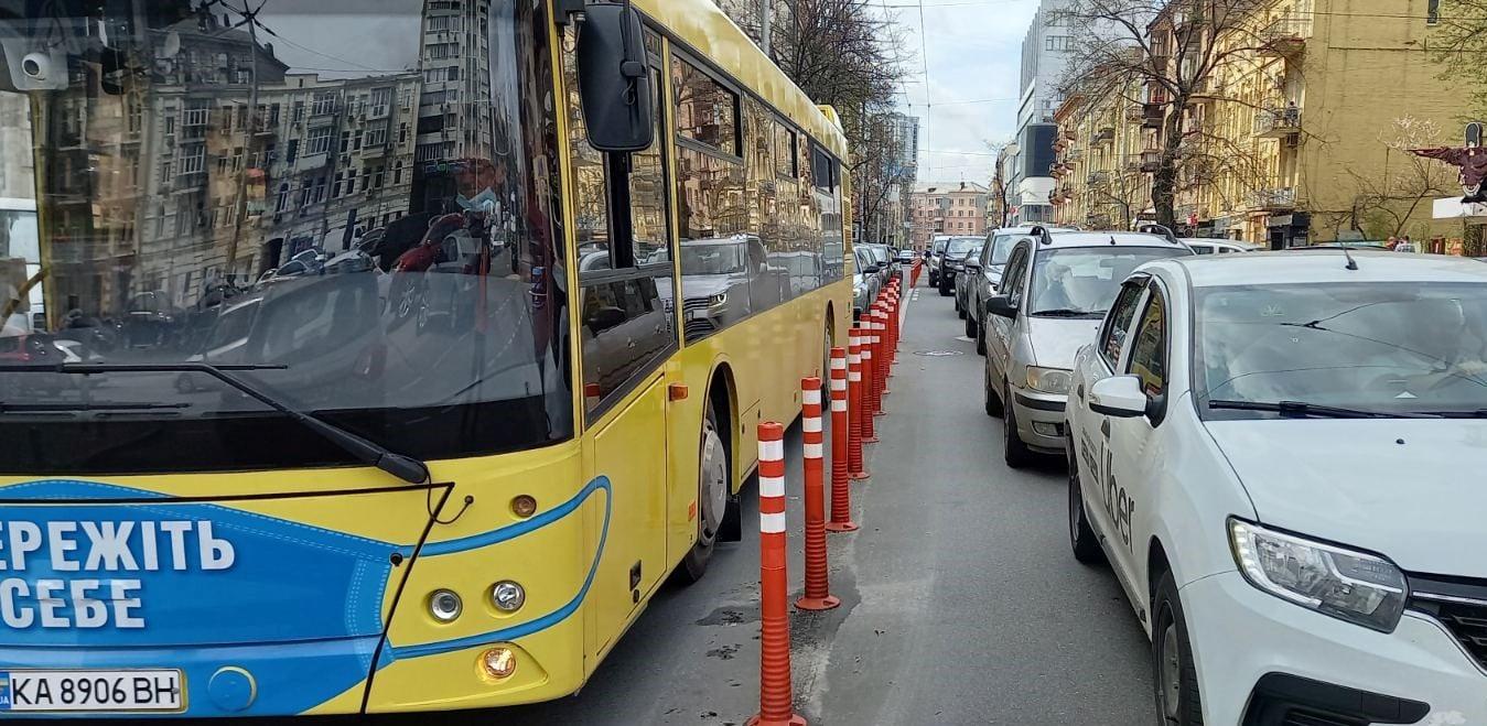 Стовпчики тут відділяють смугу руху для громадського транспорту, запобігаючи хаотичному паркуванню на проїжджій частині та дозволяють швидше проїхати тролейбусам і автобусам.