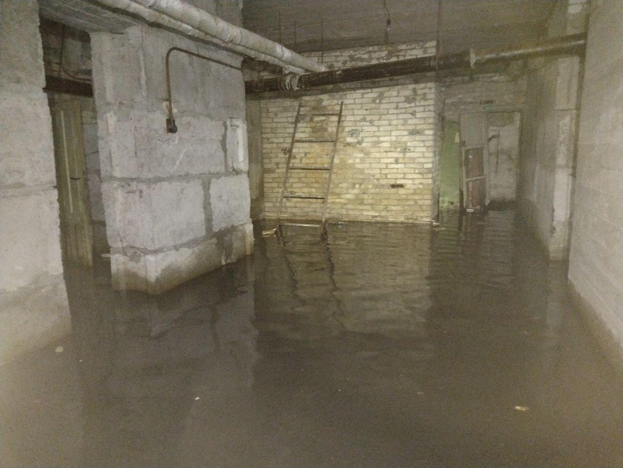 На фото можна побачити, що окрім води, у підвалі величезна купа сміття.