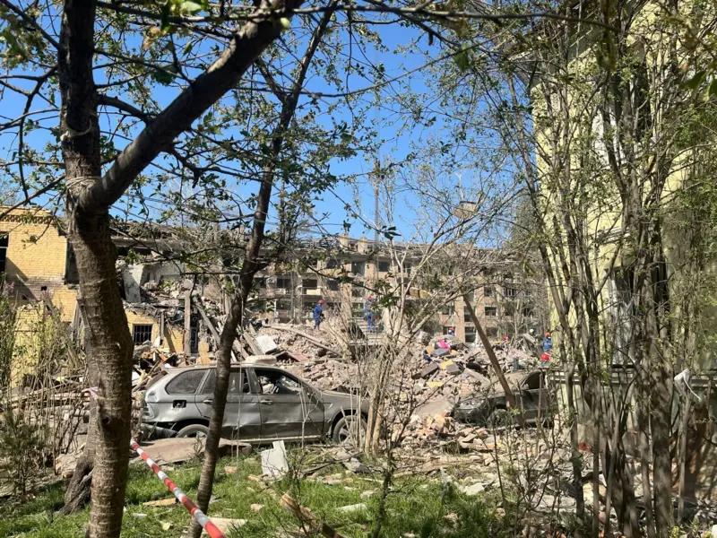 У Святошинському районі Києва, куди вночі 24 квітня 2025 року влучили російські ракети, триває напружена рятувальна операція. Під завалами зруйнованих будинків шукають вцілілих, а пейзаж довкола — це суміш розтрощених стін, битого скла й розкиданих квітів.