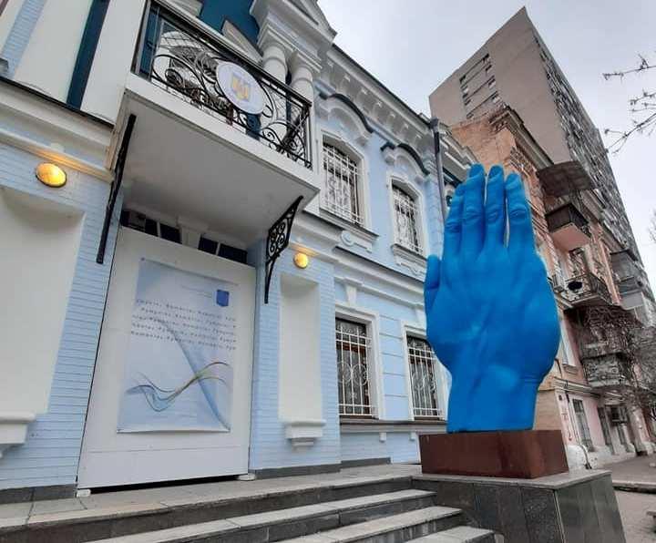 За її словами, тепер синю руку можна побачити біля посольства Румунії.