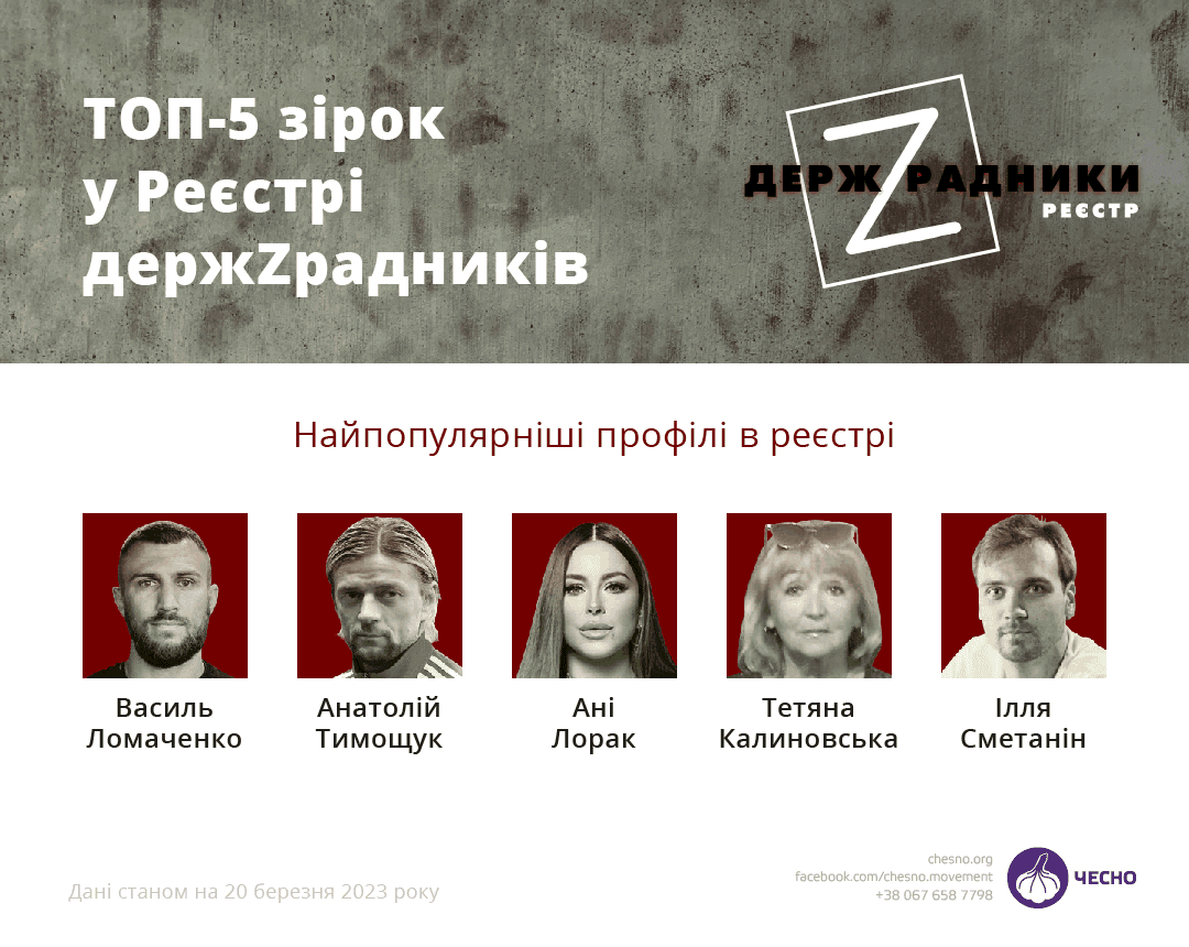 На третьому місці рейтингу зірок — співачка Ані Лорак. Наприкінці 2022 року Лорак потрапила до санкційного списку РНБО серед публічних осіб, які прямо чи опосередковано підтримали військову агресію росії проти України.