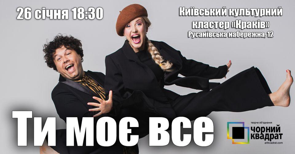 Як говорять організатори, «Ти моє ВСЕ» – це казка. Насправді такого не буває, а якщо і трапляється, то так рідко, що прирівнюється до того, що такого не буває. Тому що після вистави є ризик обговорювати її до самого ранку. Бажання і розуміння, довіра і ревнощі – ці теми близькі будь-якому глядачеві. Вистава в цілому не на один раз, і у вас може виникнути бажання переглядати її знову і знову. Тому, квитки на неї завжди закінчуються заздалегідь.