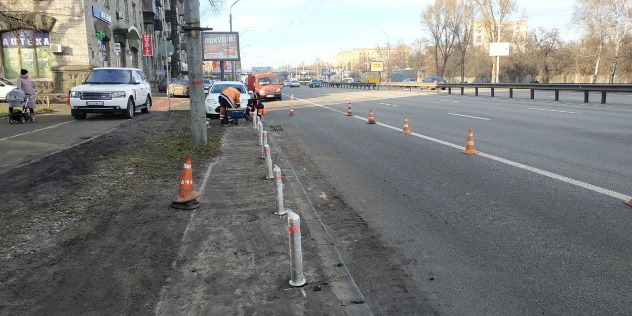 В Киеве продолжается работа по установке антипарковочных столбиков и устанавливают их не только в центре города.