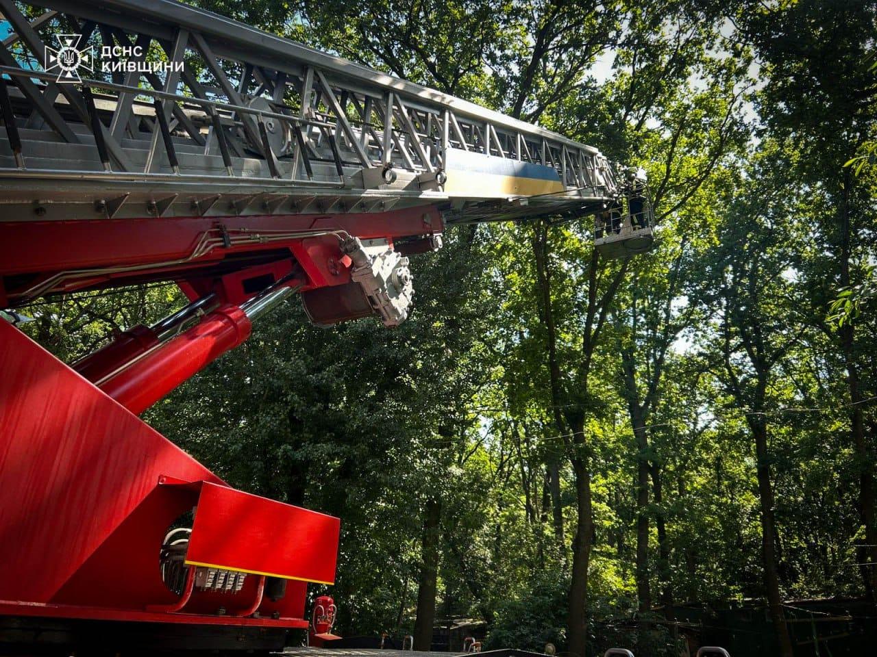 Сьогодні на допомогу тварині покликали рятувальників. За допомогою автодрабини вони обережно дістали тваринку, яка мала поранену лапку та була дуже налякана. Операція проводилася з особливою обережністю, щоб не травмувати тварину.